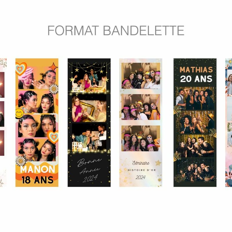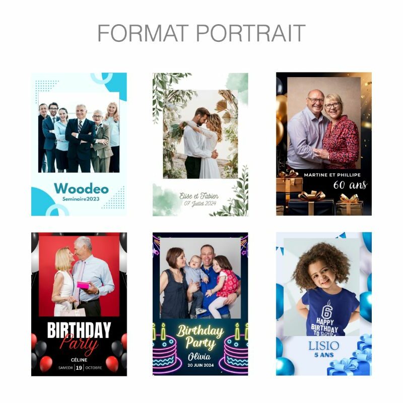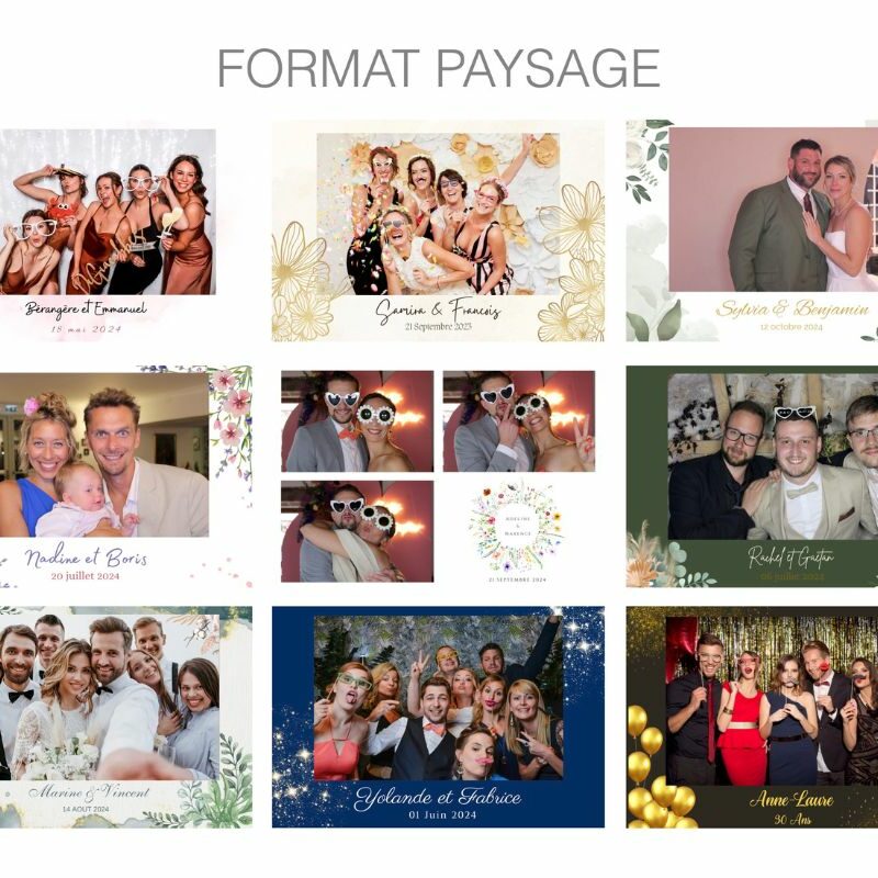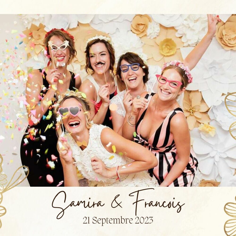 D’un simple clic, vos proches immortalisent un moment de complicité, en solo ou en groupe, avec ou sans accessoires. Chaque photo est instantanément imprimée et personnalisée à l’image de votre événement (couleurs, logo, date, message, etc.).